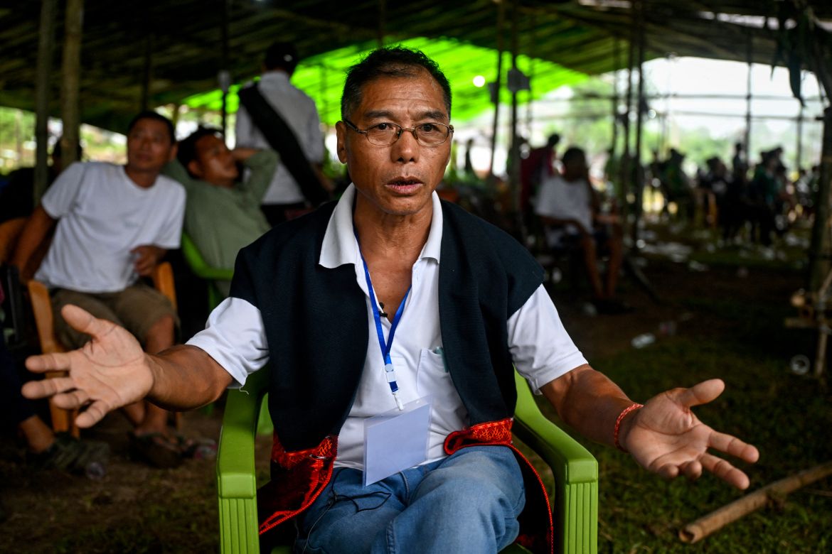 Likeng Libang, a resident of Yingkiong town, at a community meeting in Geku village against the Siang Upper Multipurpose Project, a proposed hydroelectric mega-dam project in the Upper Siang district of the northeastern state of Arunachal Pradesh. [Arun Sankar/AFP]