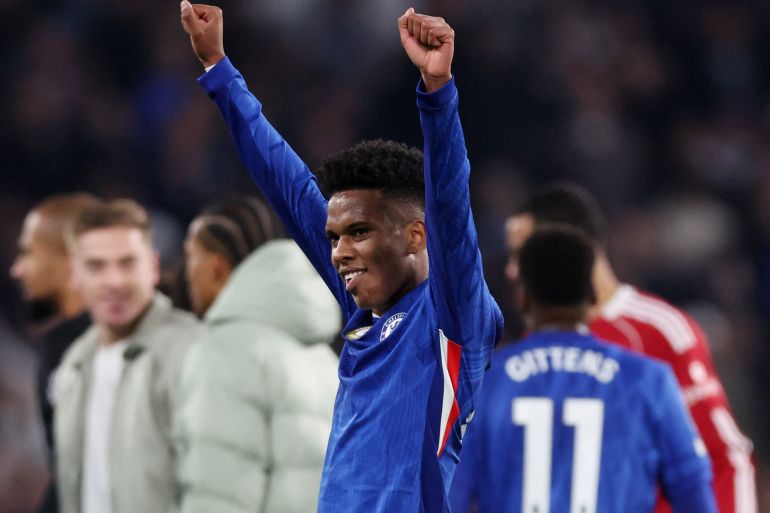 Chelsea’s Estevao celebrates after the Premier League match against Liverpool [David Klein/Reuters]