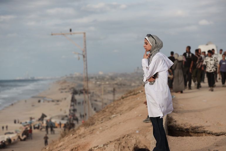In the afternoon, I headed towards al-Nuwairi Hill near the Nuseirat refugee camp in central Gaza. Thousands had gathered there on the sandy hill with their belongings, waiting to be allowed to travel north to their neighbourhoods in Gaza City.