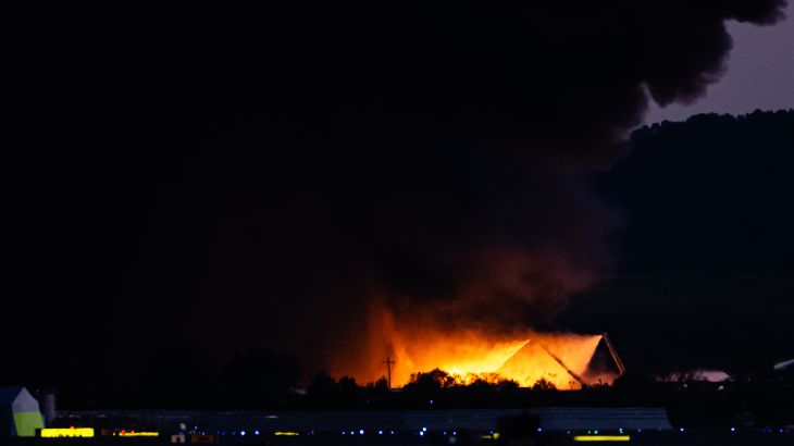 Smoke and flames rise as a UPS cargo plane crashes in Louisville, Kentucky [Reuters]