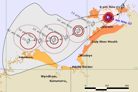 Weather bureau senior meteorologist Dean Narramore said that while the cyclone was not expected to make landfall, it would bring “widespread heavy rainfall and damaging-to-locally destructive winds” to Darwin, which has a population of about 140,000 people.