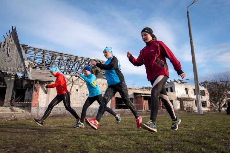 Young athletes in northern Ukraine spend their days cross-country skiing through a scorched forest, focused on their form – until a siren inevitably shatters the silence.