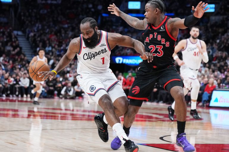 James Harden scored eight of his 31 points in overtime and added 10 assists as the visiting Los Angeles Clippers defeated the Toronto Raptors 121-117.