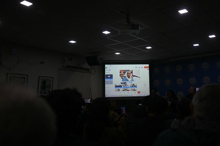 In an audio address played on Friday to a packed Foreign Correspondents’ Club in New Delhi, Hasina accused Muhammad Yunus, the head of Bangladesh’s interim government, of being a “murderous fascist” and said Bangladesh would “never experience free and fair elections” under him. More than 100,000 people watched the address, which was broadcast online.